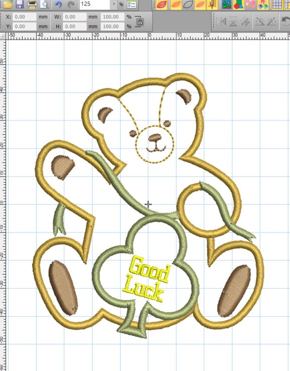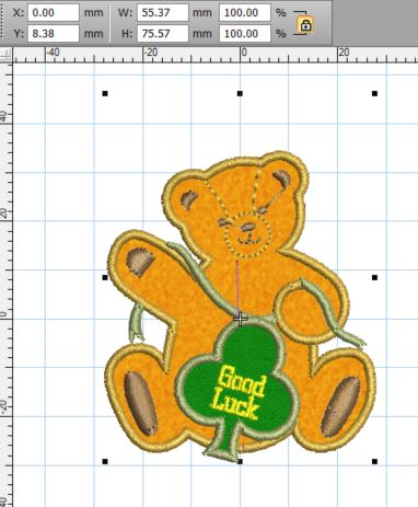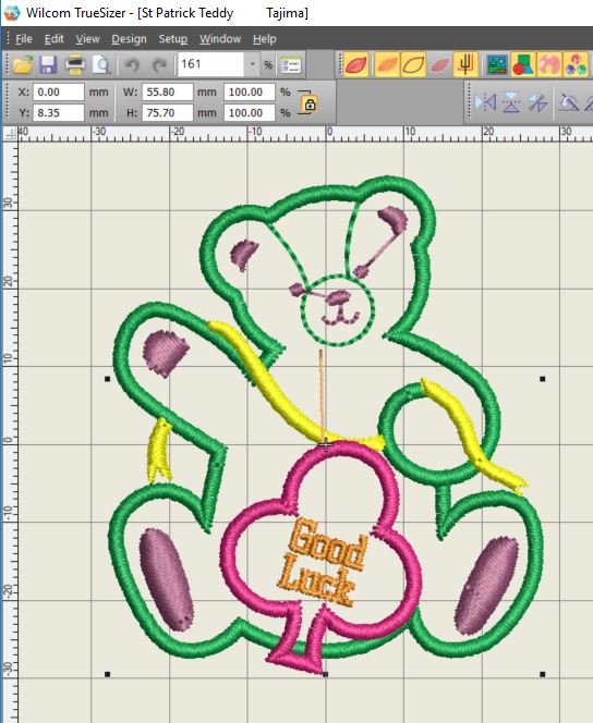 Everything seems pretty much OK, of course we haven’t done anything yet. Let’s select a certain part, and measure up the stitch spacing. (I’ll choose the nose part).
